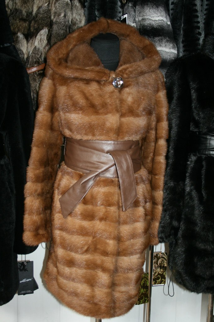 В НАЛИЧИИ! Норковая Шуба с капюшоном - степная НОРКА (поперечка) Рукав съемный. Длина90см. Размеры: с 42 по 52